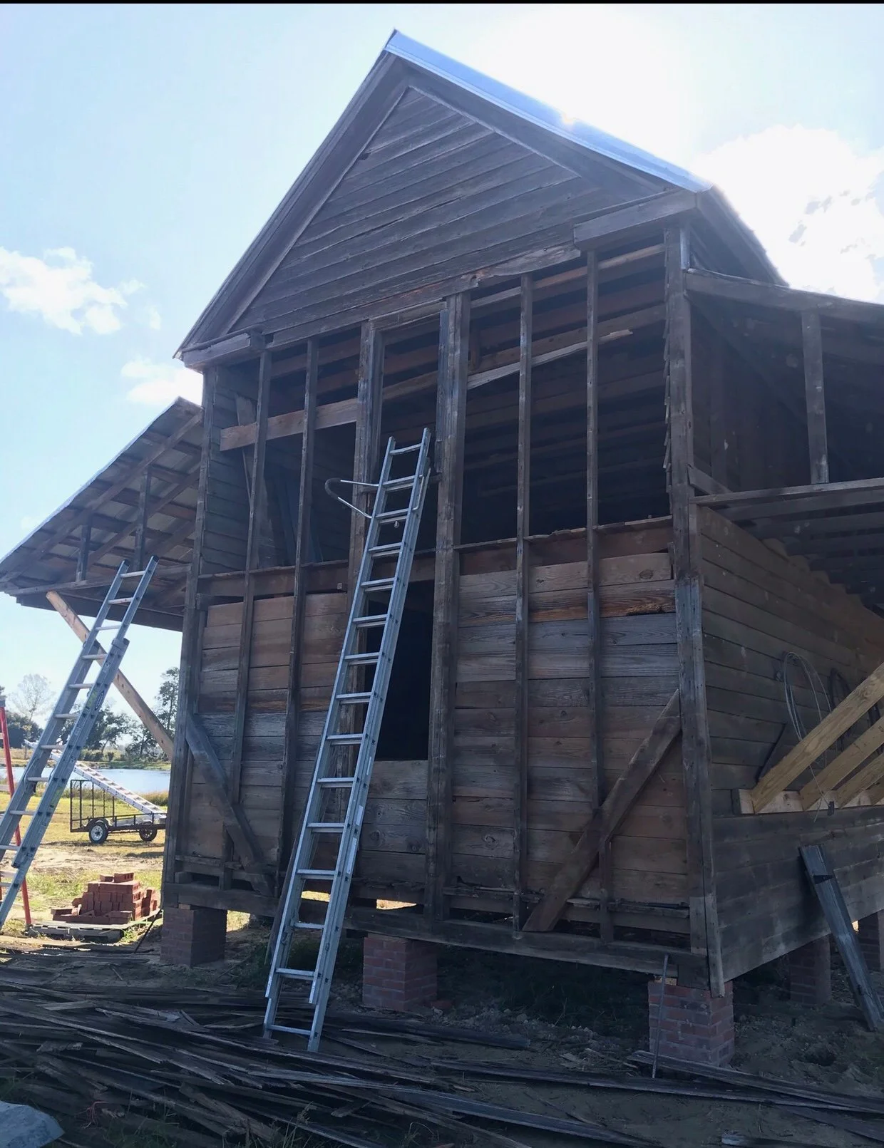 We moved the barn in 2020 and wanted to restore it to its former glory. The goal this time was to reform it from a pack house into a cottage beside the pond. The barn was built by Craig Burgess in approximately 1890s to 1900. It was used as a pack house to store tobacco or grain. Craig died in the Spanish flu epidemic. There was also a dairy on the farm around the time it was built. It was purchased by Ernest McIntosh in the 1930s. It remained on the property in the same spot it was built in the 1890s until its 2020 move.