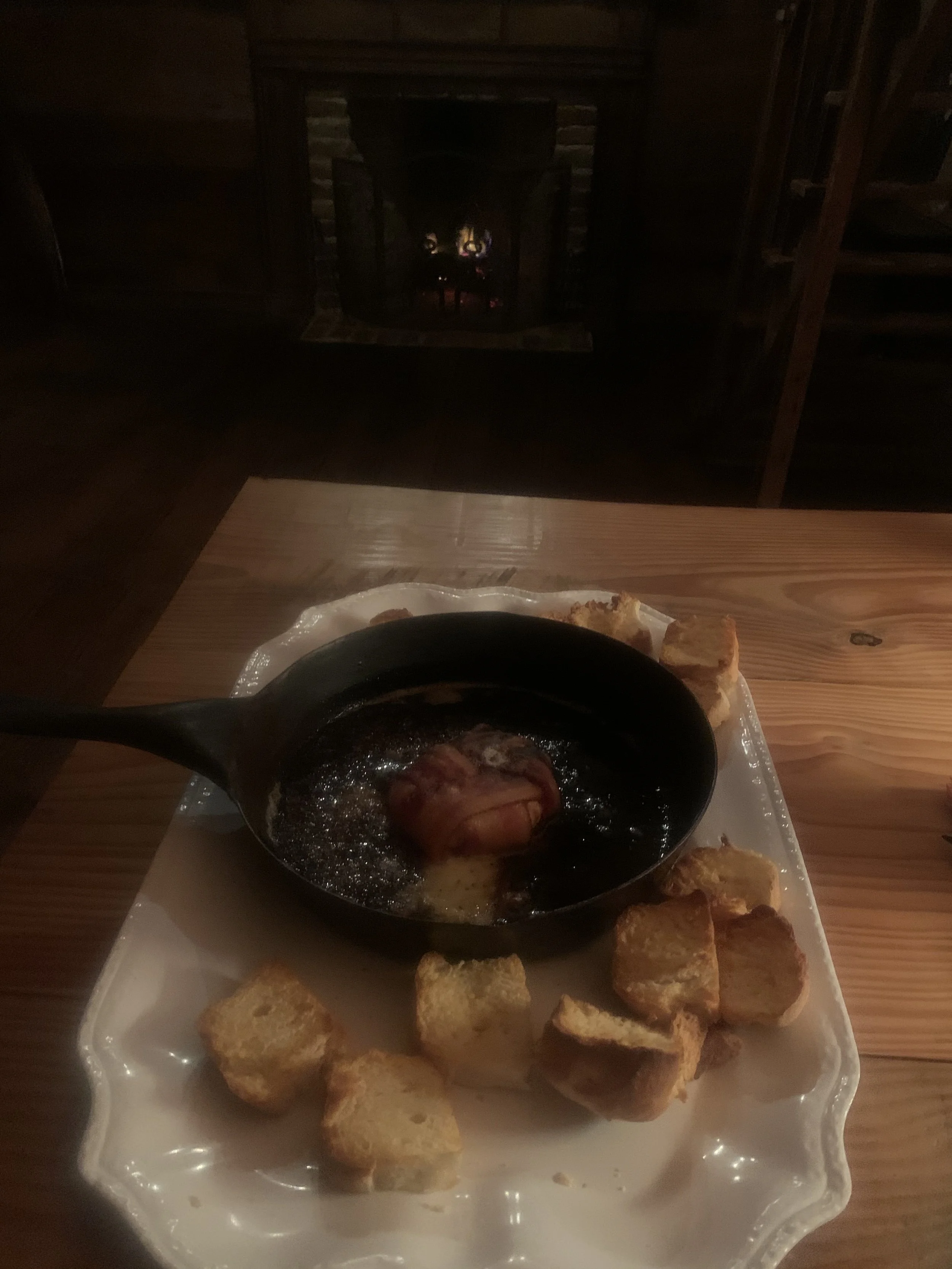 Wrap the woven bacon around the brie and place into a cast iron plan.