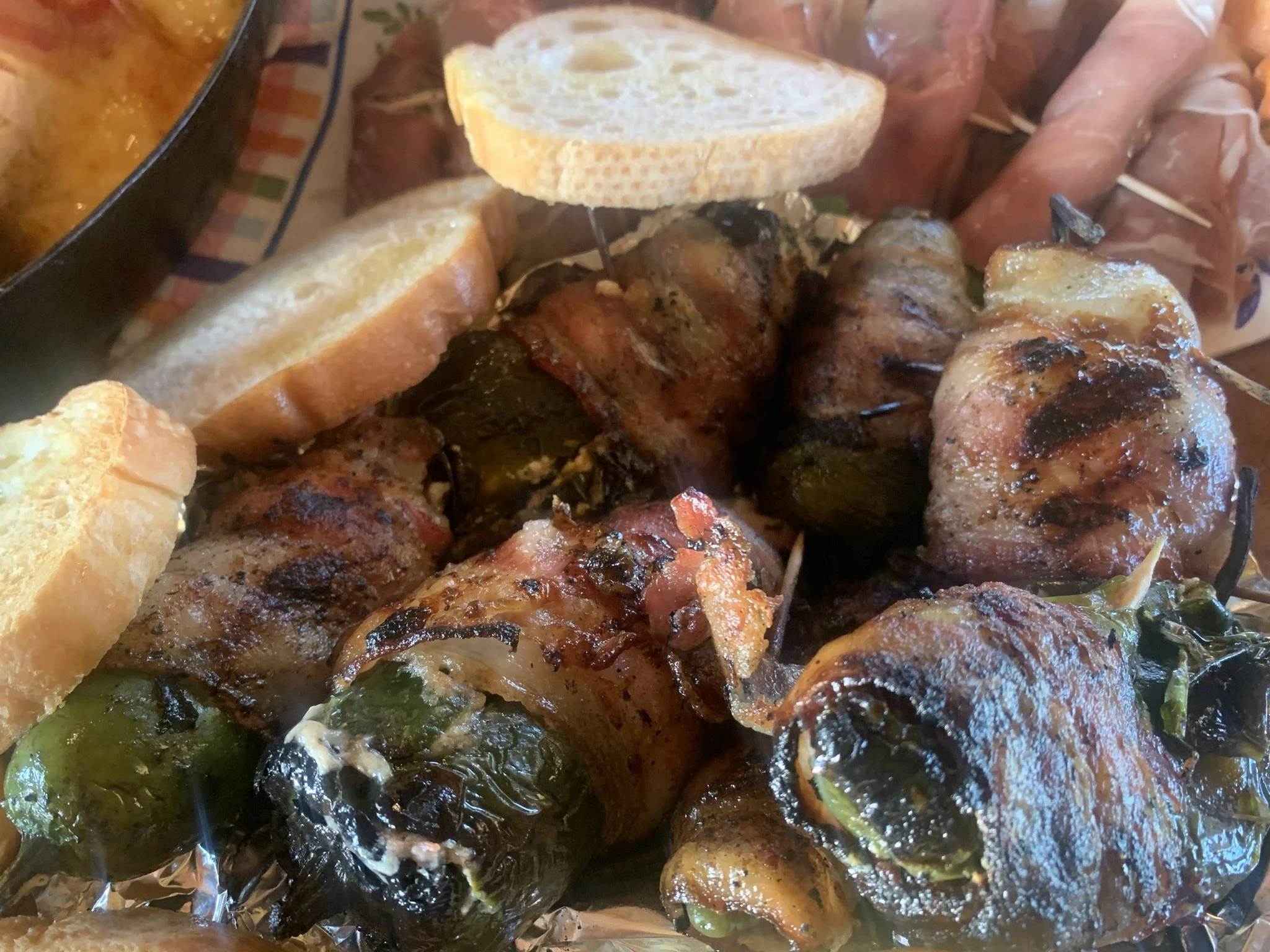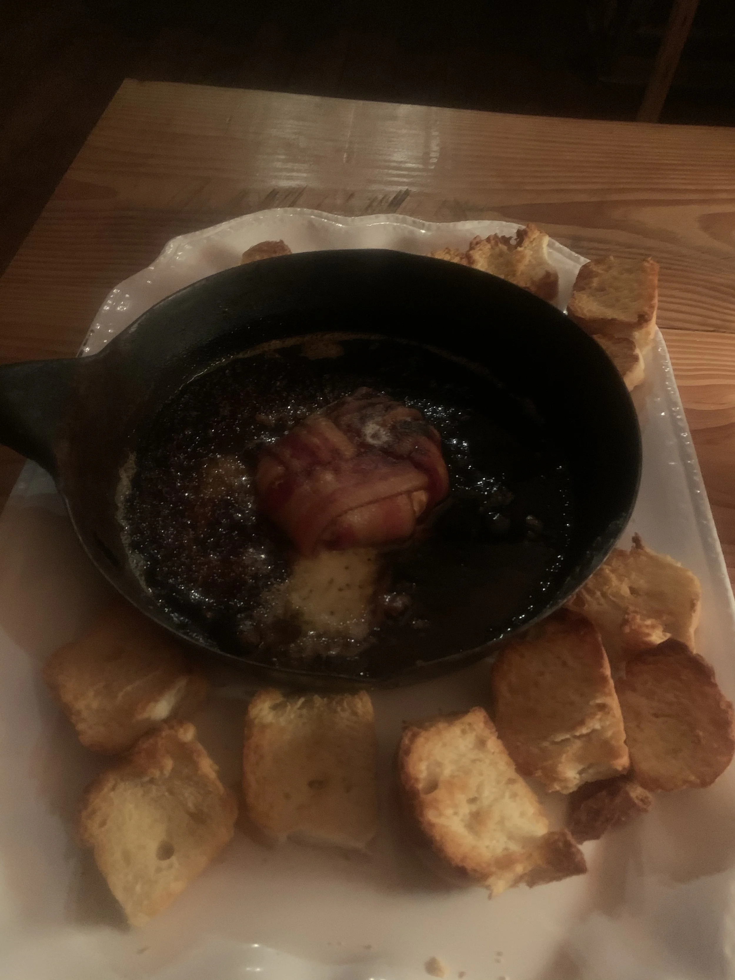 Bacon Wrapped Brie with Pepper Jelly with Crostini